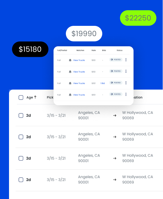 Our platform seamlessly connects shippers, carriers, and brokers, ensuring the right load matches the right truck at the optimal price, regardless of location. Experience real-time tracking, automated shipment updates, and a user-friendly dashboard designed to streamline your daily tasks.